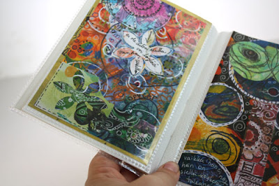 I have tried to find easy ways to do art journal pages when I only have little time for it. I had a couple of small empty photo albums so I thought why not! People already scrapbook by inserting photos and journal cards to photo pockets so there’s not much difference to that!